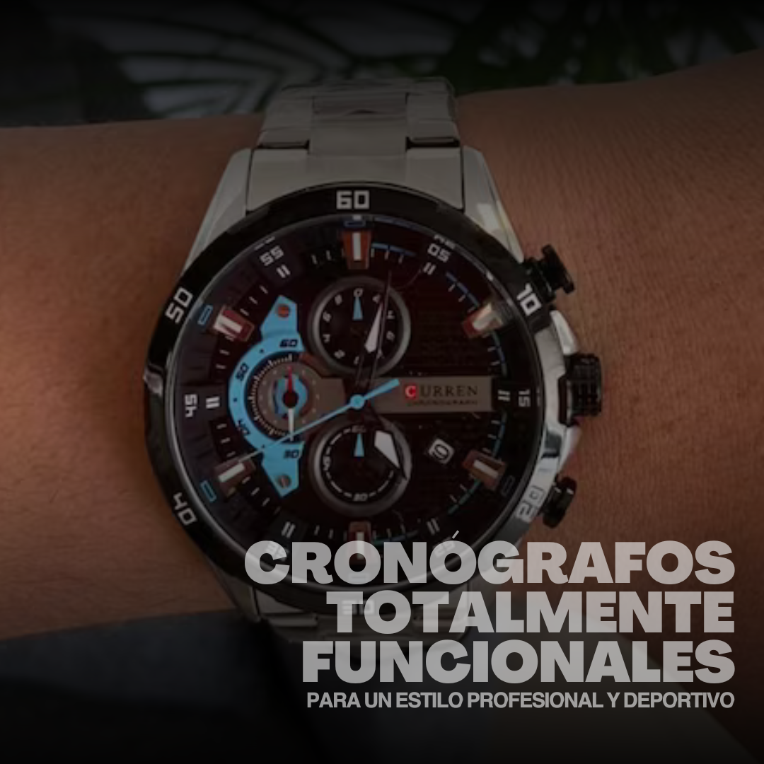 - Característica: Manecillas luminosas, calendario y cronógrafos funcionales (segundero, minutero, 24 horas)