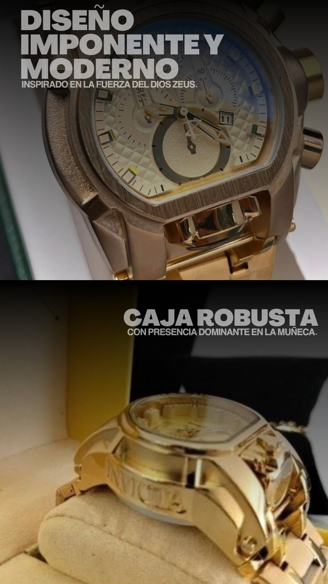 RELOJ INVICTA ZEUS GUAYA DORADO NEGRO - PODER Y PRECISION (CRONOS FUNCIONALES)