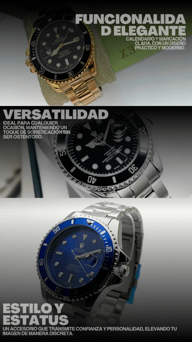RELOJ ROLEX SUBMARINER PREMIUM INSPIRED BICOLOR/AZUL - SOFISTICACIÓN, ELEGANCIA Y FUNCIONALID