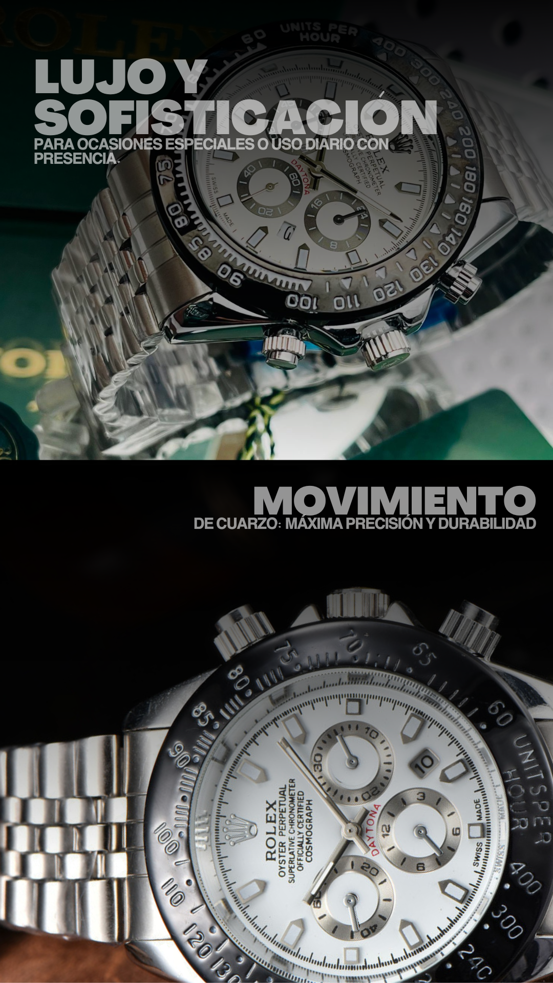 ROLEX DAYTONA ACERO CHRONOSPORT PLATEADO/NEGRO - PRESTIGIO EN CADA SEGUNDO